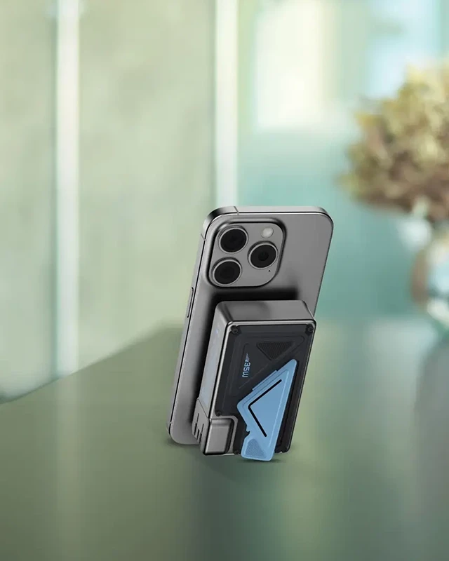 - شارژ بیسیم MagSafe 15 وات: برای کاربران آیفونهای سازگار با MagSafe (سری 12 به بالا)، این قابلیت شارژ بیسیم 15 واتی را ارائه میدهد. اتصال مغناطیسی قوی، قرارگیری صحیح گوشی برای شارژ بهینه را تضمین میکند و تجربهای بدون سیم را فراهم میآورد. این پاوربانک از توانهای 5W، 7.5W و 10W نیز برای دستگاههای دیگر که از شارژ بیسیم Qi پشتیبانی میکنند، پشتیبانی میکند.